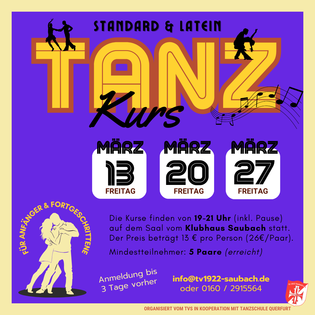 Am Freitag (11. März) startet wieder der STANDARD & LATEIN TANZKURS in Kooperation mit der Tanzschule Querfurt. 💪